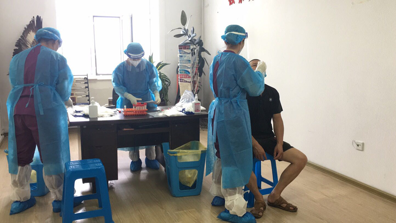 為進(jìn)一步確保食品安全生產(chǎn),2020年8月4日,寧安市人民醫(yī)院來工廠為全體員工進(jìn)行核酸檢測(cè),共有189人接受了檢測(cè)。